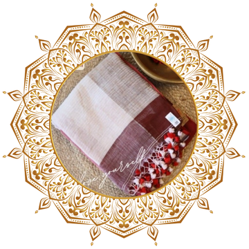 Pure Linen Jamdani Saree handwoven with blouse – Light weight easy to drape. Comfortable all day .