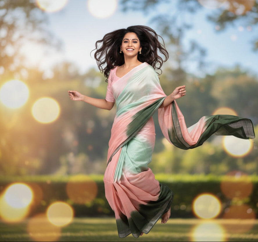 Pure Linen Saree with blouse – Elegant, Professional & Handwoven Light weight easy to drape. Comfortable all day .