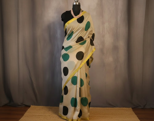 Magnificent off White/ Green/ Yellow Maheshwari Handloom Saree with Silk Zari – 80% Silk, 20% Cotton (Cotton Silk) – Comes with Matching Blouse Piece. -