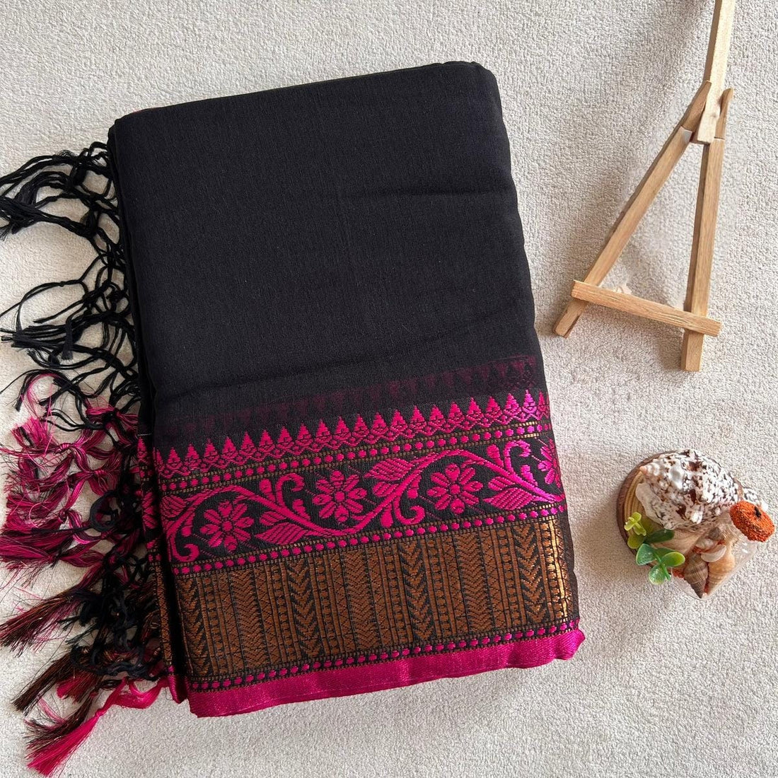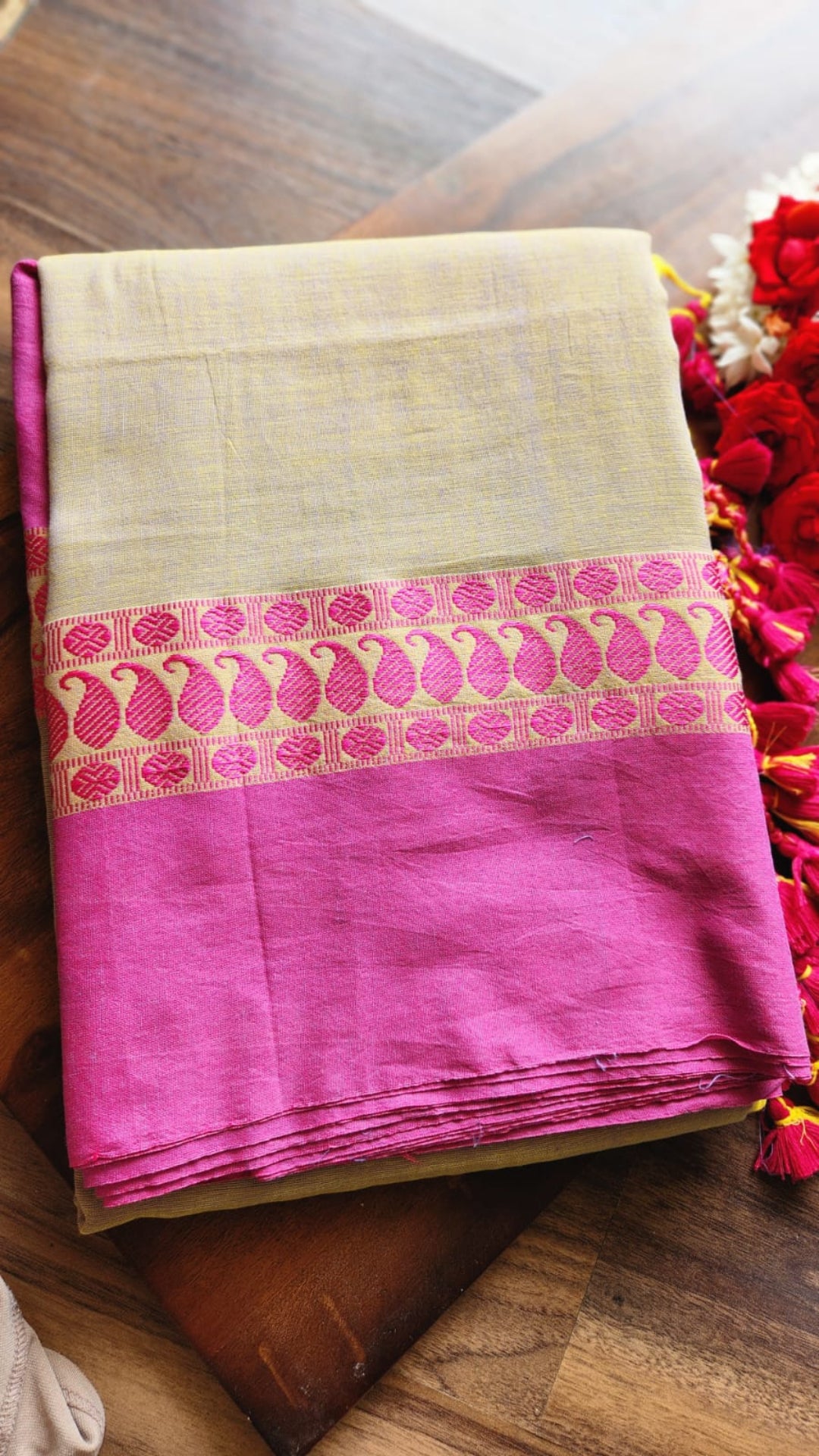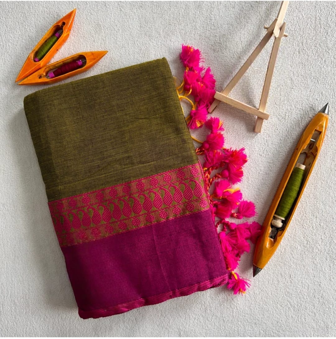 Pure Dhaniakhali Khadi Cotton Saree with blouse – Elegant, professional & handwoven, light weight easy to drape. Comfortable all day.
