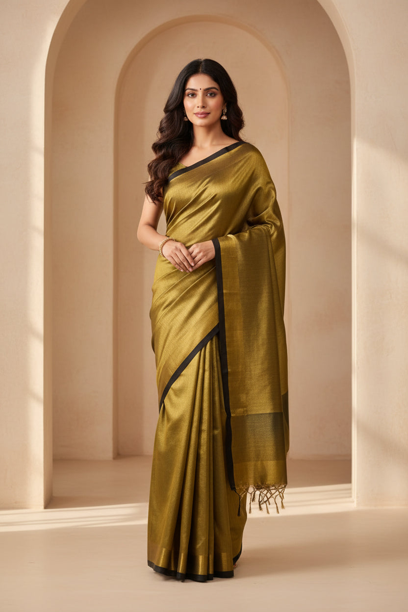 Handloom cotton Tissue Zari with blouse. Lightweight, comfortable all day. Easy to drape.