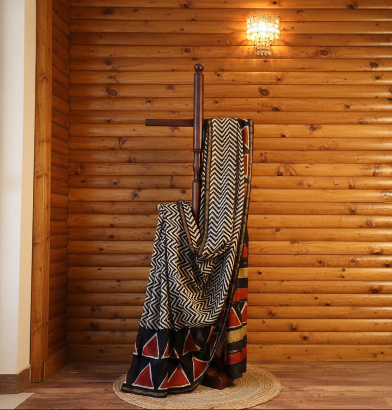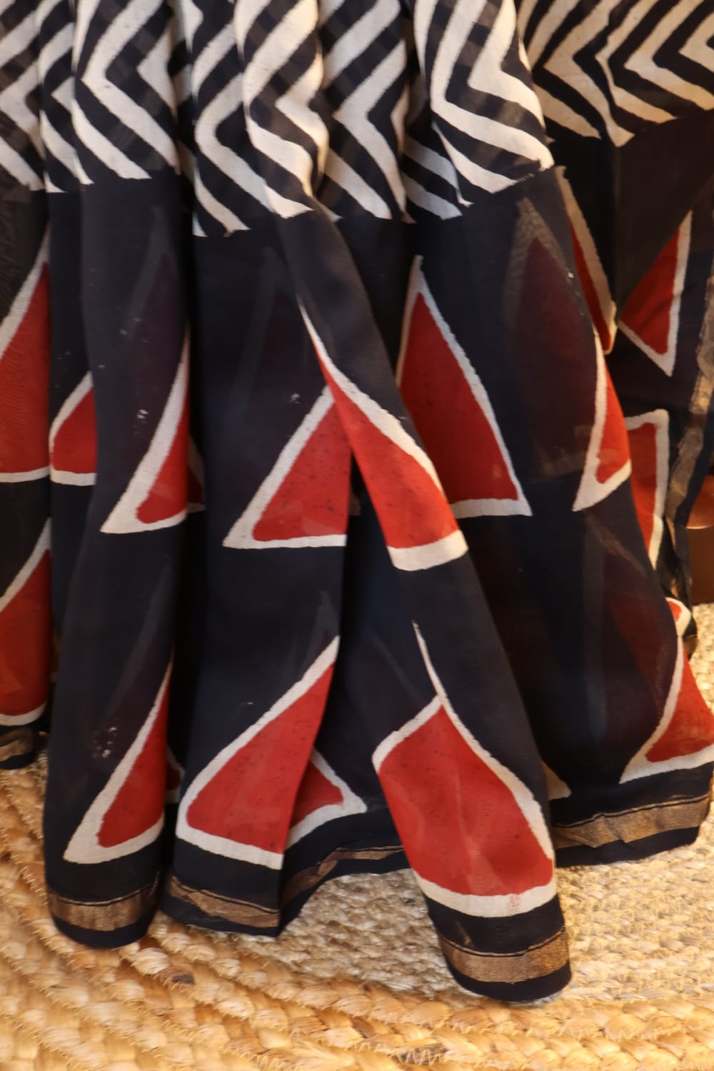 Authentic Chanderi handloom Silk Saree with blouse – Lightweight and comfortable all day. Easy to drape.