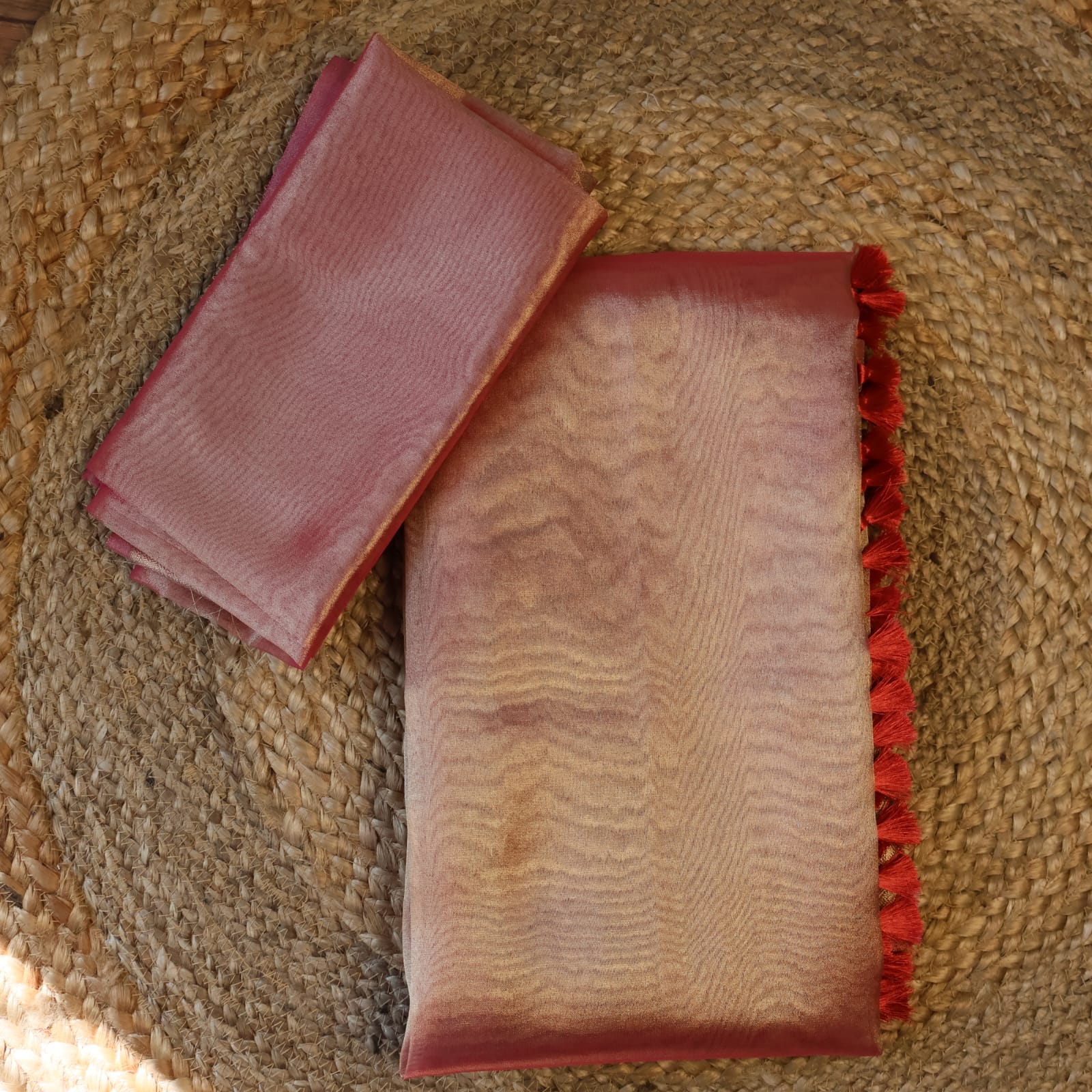 • Pallu: Enhanced with traditional handmade silk tassels