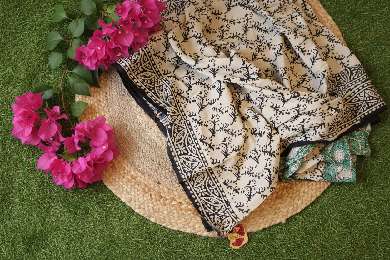 Mulmul Cotton Hand Block Printed Saree – 100% Pure Cotton