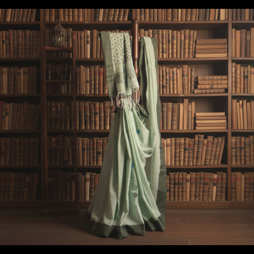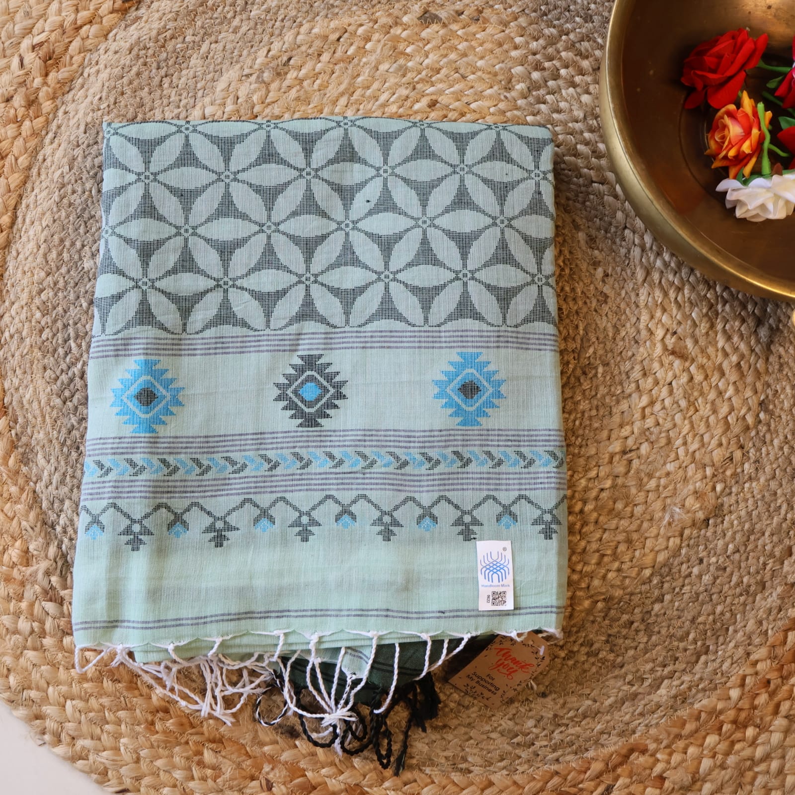 Pure 100% Khadi Jamdani Cotton Saree – West Bengal Handwoven