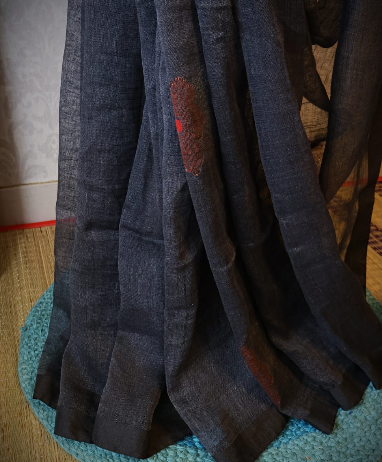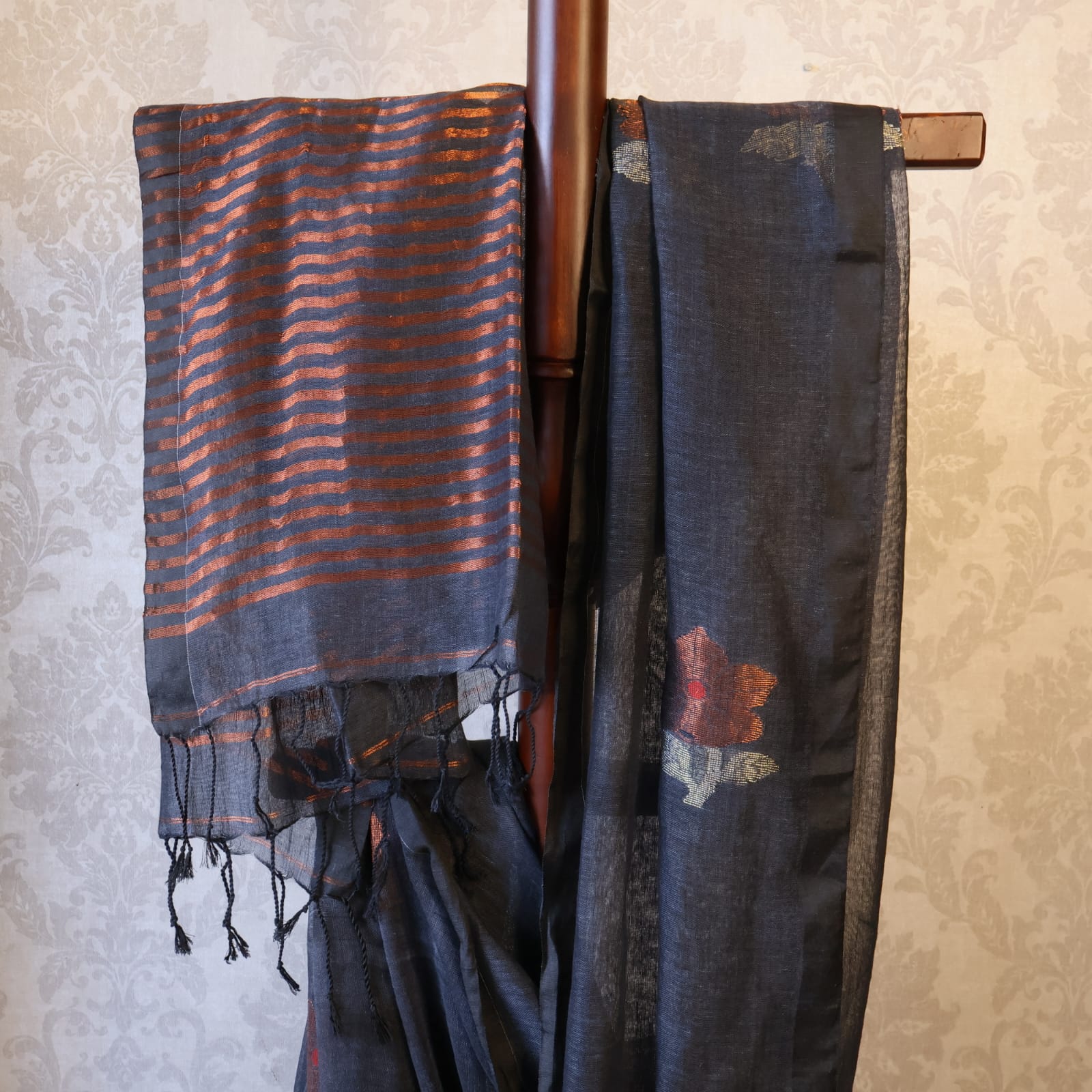 Pure Linen Jamdani Saree handwoven with blouse – Light weight easy to drape. Comfortable all day .